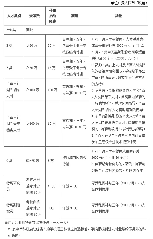 各类人才除享受按国家有关规定提供的工资、保险、福利待遇外,学校还提供特殊待遇。