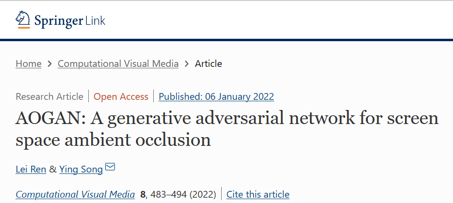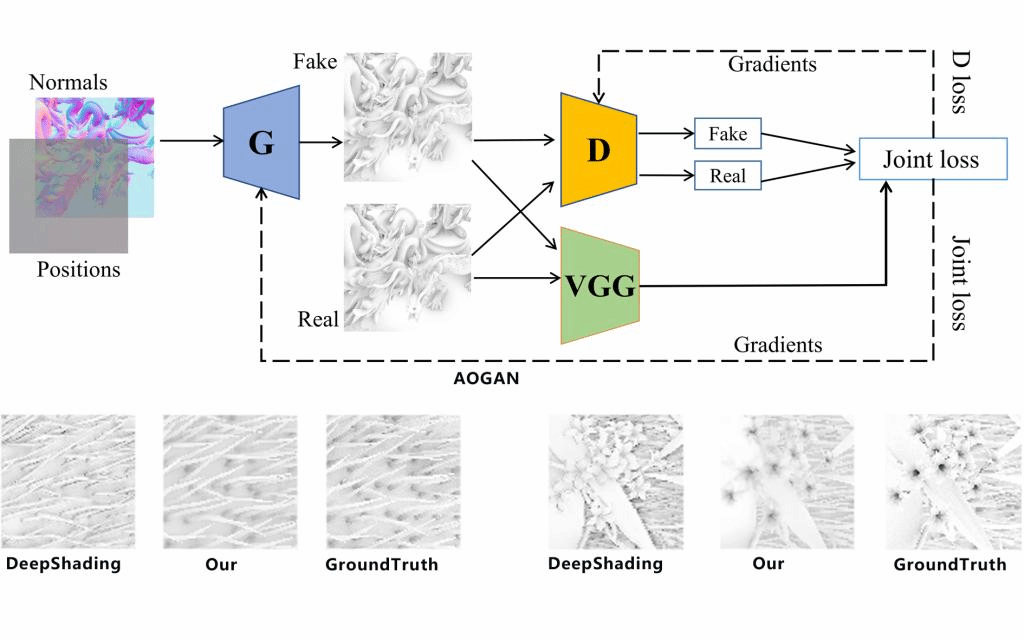 本文提出了一种端到端的生成对抗网络AOGAN以生成高质量的AO,可以集成到延迟渲染框架,为虚拟现实方面的实时渲染提供技术基础。