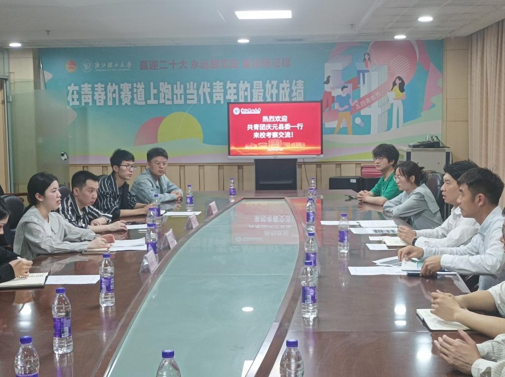 4月19日上午,共青团庆元县委书记叶冰青、团庆元县委干部吴文烨、庆元县淤上乡团委书记吴梦飞、庆元县官塘乡团委书记周志斌等一行来球王会调研交流。校团委副书记闫肃出席并主持交流座谈会,计算机科学与技术学院(人工智能学院)团委书记朱诗威、团委副书记李想以及庆元籍在校学生、庆元县挂职学生参会。
