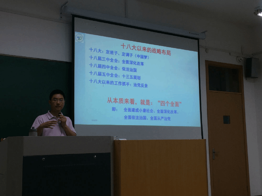 郑显理以“习近平总书记系列重要讲话精神解析”作为宣讲课主题,从国内外背景、内容实质、具体部署等方面对十八大以来党中央提出的“四个全面”战略布局进行了详细解读,同时就习近平总书记在2015年春节团拜会讲话中提到的道德建设和在孔子诞辰2565周年国际儒学研讨会上的讲话中提到的家庭家风建设分享了自身的学习心得与体会。整个报告深入浅出,内涵丰富、思想深刻、逻辑严谨,对学院全体教职工党员进一步学习领会习近平总书记系列重要讲话精神起到了极强的推动作用,与会党员普遍反应深受启发、获益良多。