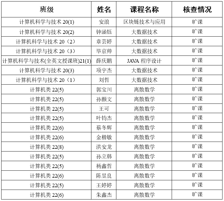 结合学院学生工作办公室听课抽查,相关学生组织不定期抽查,任课老师点名,学习委员考勤等情况,对于相关违纪学生,学院将按照学生手册《球王会体育官方网站学生违纪处分规定》第三十三条相关规定执行。《球王会体育官方网站学生违纪处分规定》第三十三条具体:学生一学期旷课累计达10-19学时,给予警告处分;旷课20-29学时,给予严重警告处分;旷课30-39学时,给予记过处分;旷课40学时以上者给予留校察看处分。