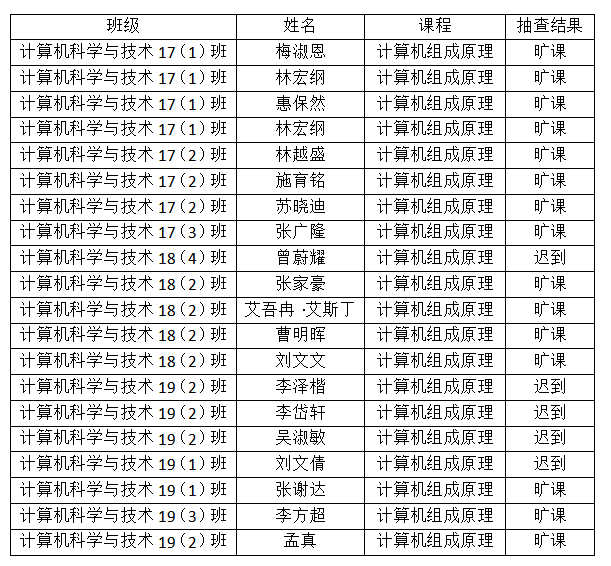 第13周我院学生工作办公室和学风建设指导中心会学习部对学生课堂出勤情况和学习表现进行了随机抽查,现将抽查结果通报如下。