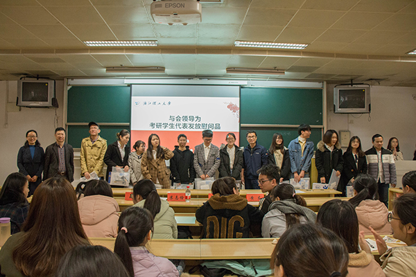 11月28日上午,我院2019届毕业生考研激励动员暨毕业设计指导大会在2N-223举行,学院党委书记苏志俭,党委副书记方水明,副院长姚青、副院长童基均,考研工作负责人陈灵宇,18级研究生代表黄友以及2019届全体考研、出国升学意向学生参加此次大会,大会由陈灵宇主持。