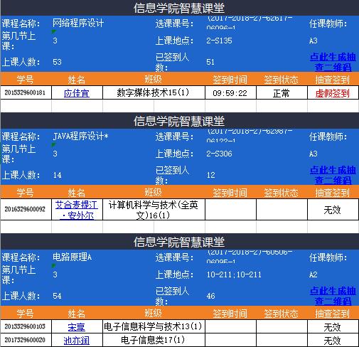 为进一步推动学风建设,加强学生管理,营造良好学习氛围,提升学风建设内涵,学生工作办公室和任课老师利用信息学院数据决策系统对学生课堂出勤情况和学习表现进行了随机抽查,现将抽查结果通报如下: