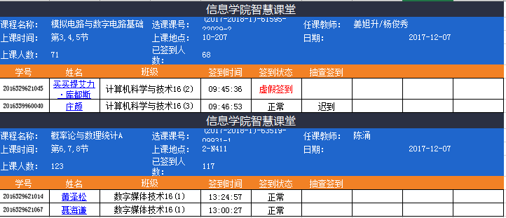 上述同学存在手机未签到或手机签到而任课教师、学生工作办公室课堂抽查未在课堂、迟到等问题,现进行通报批评!对于相关违纪学生,学院将按照学生手册《球王会体育官方网站学生违纪处分规定》(球王会学【2017】12号)第三十五条相关规定执行。手机签到记录修正为“虚假签到”并双倍计算旷课节数,累计2次出现“虚假签到”,将按照 《信息学院关于进一步规范考勤工作补充说明》第五条认定为“采用技术手段篡改伪造、模拟签到”处理。