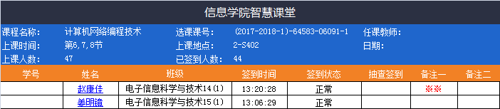 上述同学存在手机签到而任课教师、学生工作办公室课堂抽查未在课堂问题,现进行通报批评! 对于相关违纪学生,学院将按照学生手册《球王会体育官方网站学生违纪处分规定》(球王会学【2017】12号)第三十五条相关规定执行。手机签到记录修正为“虚假签到”并双倍计算旷课节数,累计2次出现“虚假签到”,将按照 《信息学院关于进一步规范考勤工作补充说明》第五条认定为“采用技术手段篡改伪造、模拟签到”处理。