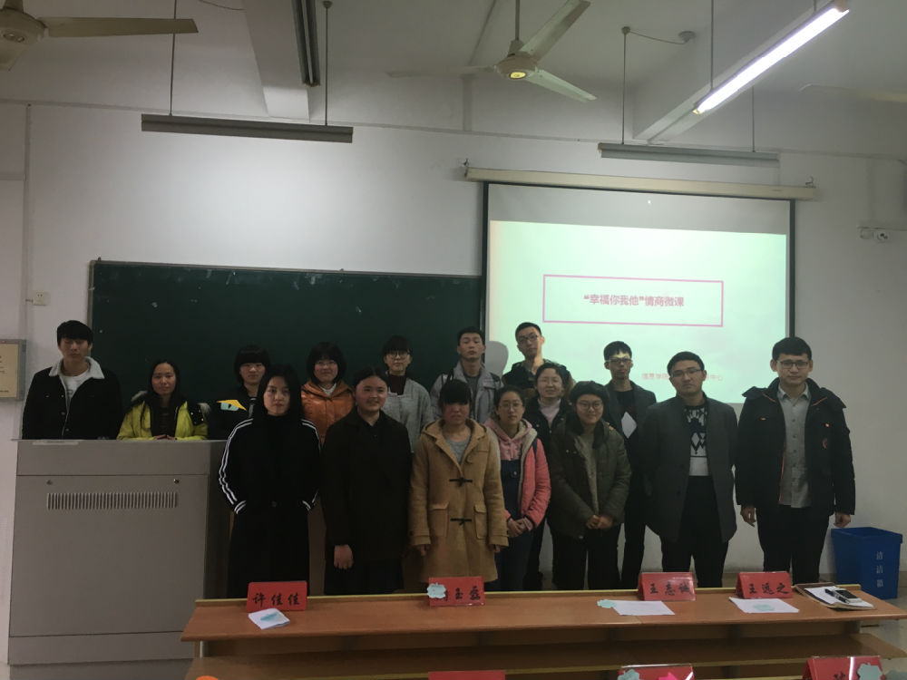 12月23日下午在2S127,信息学院举办“幸福你我他”情商微课主题大赛,15级心理委员及全体寝室长和班委参加了本次活动。
