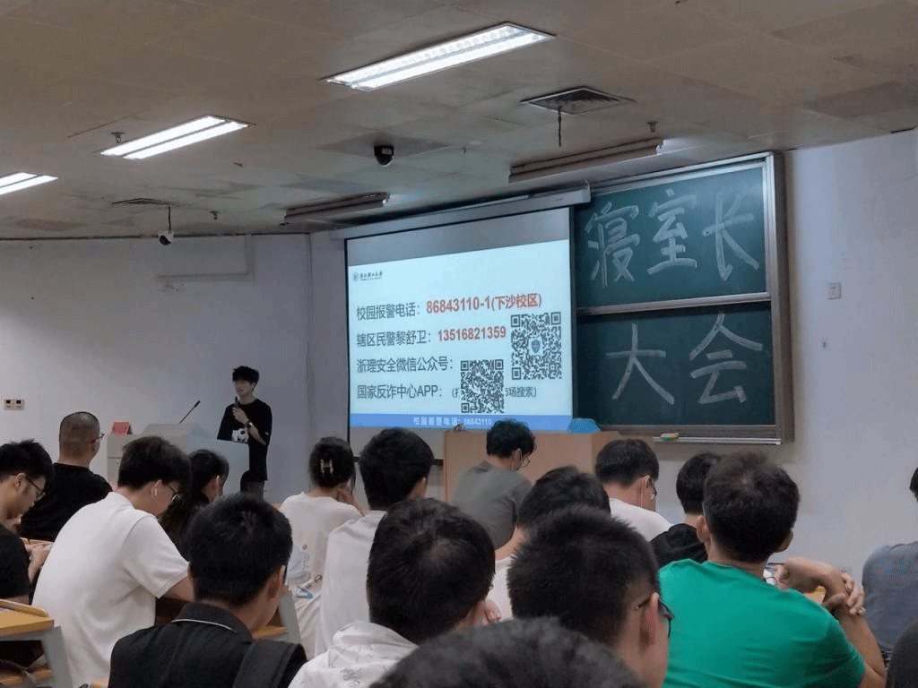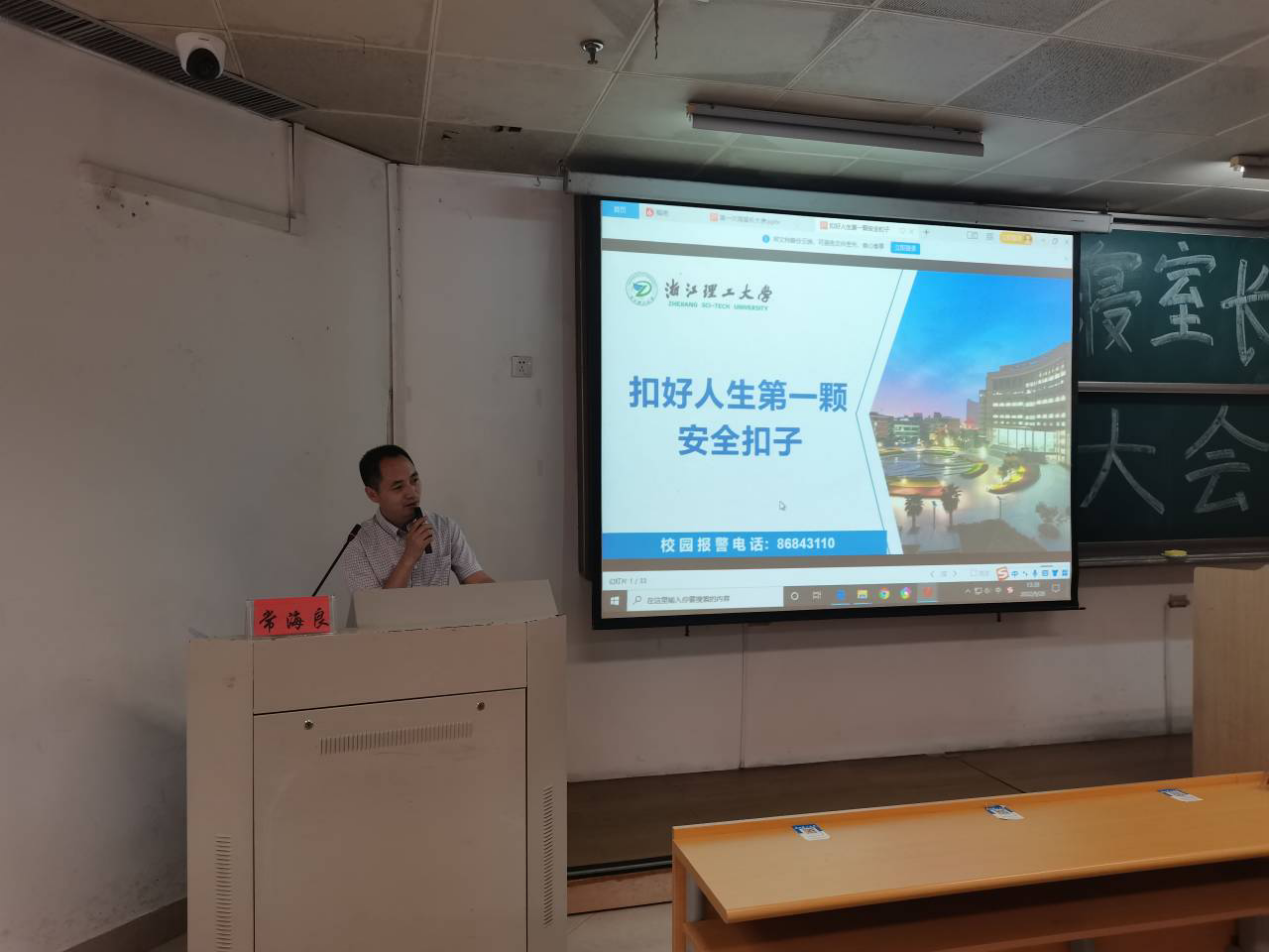 9月28日下午,我院于2号楼北楼123室(大二、大三)和124室(大一、大四)召开寝室长大会,保卫处老师常海良、社区指导老师徐俊涛参会,除大一寝室长因考试未能参加外,全体寝室长都按时到会,部分未能到场的寝室长采取了线上观看直播的方式参加此次会议。