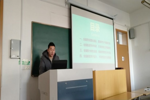 在这次会议之中,首先由学生会主席面总结了2017年举办了那些重要的活动,以及获得的成就,并且对新的一年做了展望。然后研会的部长总结了自己部门举办的一些列活动,同时提出了自己部门出现的问题,以及提出了对部分成员的表扬。接下来选取了优秀副主席和每个部门内的优秀干部,同时进行了第二届文献综述大赛的颁奖仪式。最后,黄君老师对我们的工作进行了指导,并对研会接下来开展工作时提出了合理的建议。