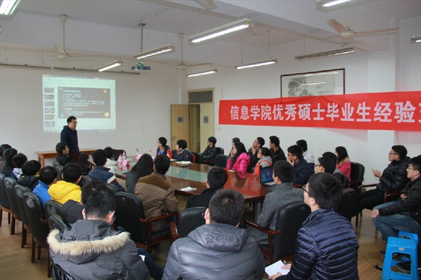 12月10日下午一点,信息学院在420会议室举办2015/2016学年信息学院“信息之星”学术科研论坛之优秀硕士毕业生返校经验交流会活动(第二场)。