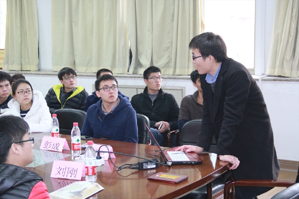 优秀硕士毕业生彭成首先发言,他根据自身情况,从学习定位、学习态度、学习规划三方面为我们讲述了如何做好学术研究。他给大家的中肯建议之一是,首先结合实际情况制定长远学习计划,再配以持之以恒的学习态度。他给大家中肯建议之二是学会用好Google、能查文献、会用文献,站在巨人的肩膀上仍能找到学术创新点。他表示,发现创新点并不是那么难,诸如设计一个性能更好的系统或降低算法复杂度或提出的问题具有前瞻性都可以算事创新点。他强调,学术论文只要用心专研,耐心推敲,大家自己也能成长为一个在学术上颇有见解的人。