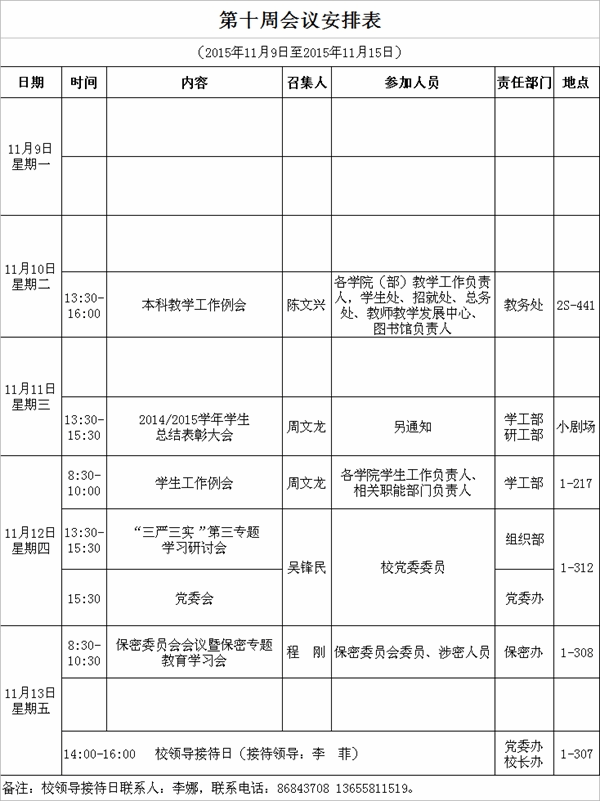第十周会议安排