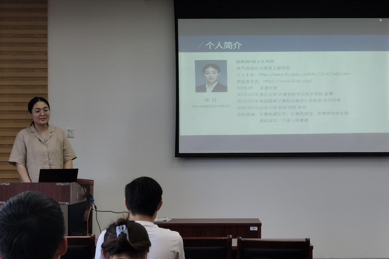 5月15日下午,计算机学院“数智前研”系列讲座第二期在25号楼920会议室顺利举行,本次活动邀请到天津大学电气自动化与信息工程学院副教授宋丹为学院师生分享虚拟试衣技术方向的研究内容。