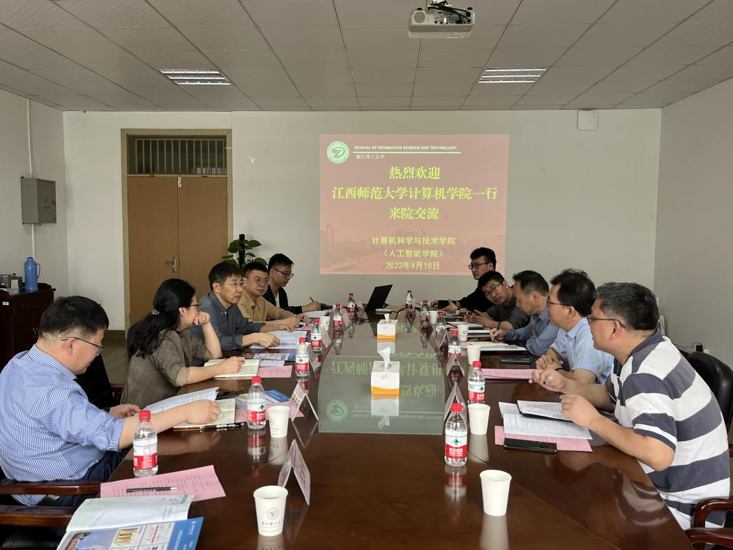 4月18日上午,江西师范大学计算机信息工程学院党委书记胡弢、副院长(主持工作)江爱文、党委副书记黄清明等一行来我院调研交流。计算机学院党委书记黄黎、院长丁佐华、副院长蒋明峰、党委副书记丁宁等参加交流座谈会。