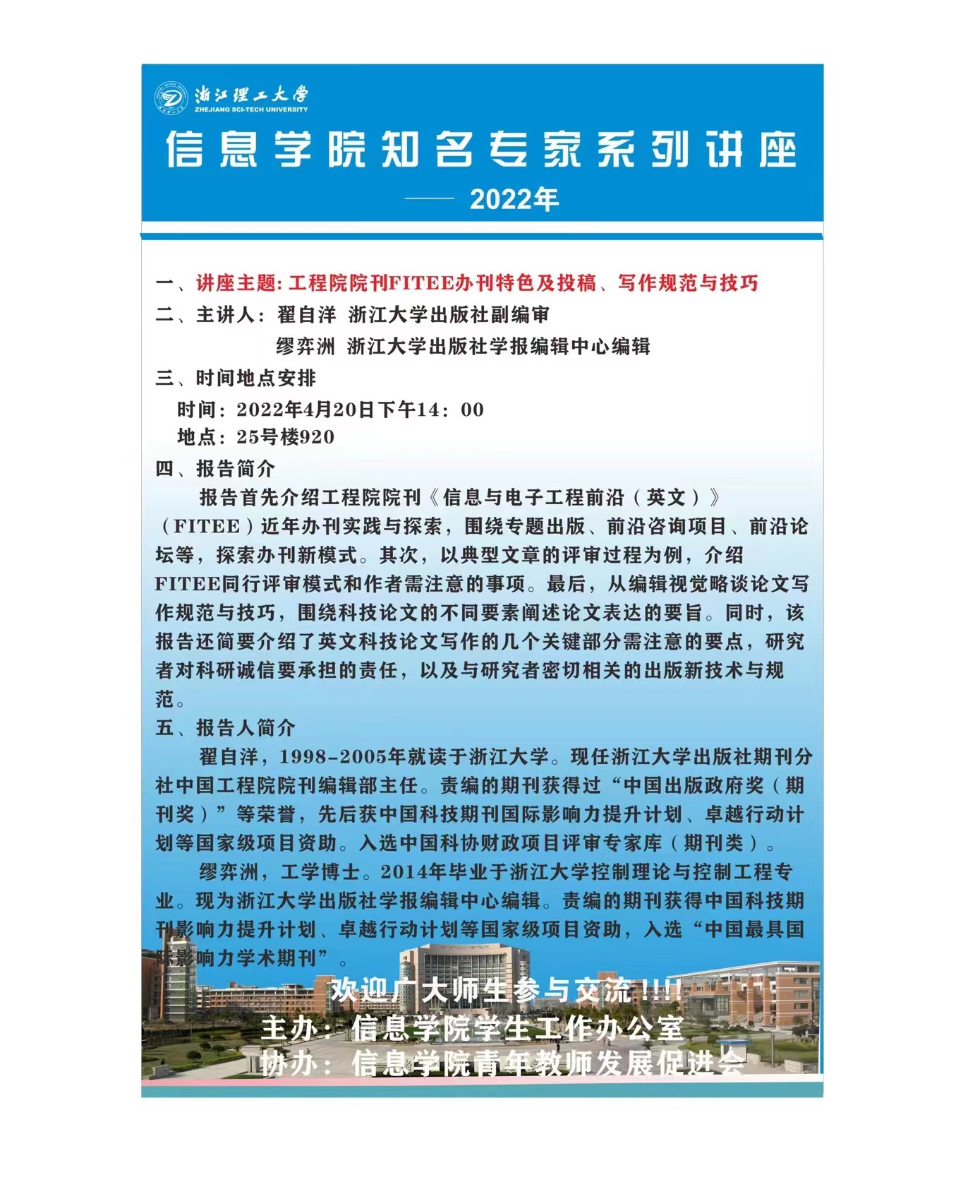 工程学院院刊FITEE办刊特色及投稿、写作规范与技巧讲座