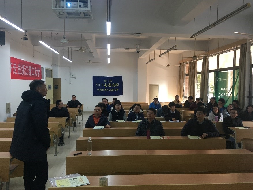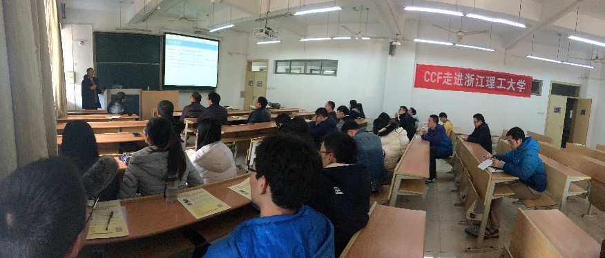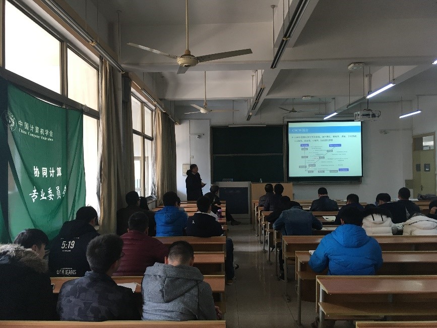 2016年12月15日,“CCF(中国计算机学会)走进高校”活动来到球王会体育官方网站。CCF理事,CCF协同计算专委主任,复旦大学计算机学院教授,复旦大学社会计算研究中心主任顾宁受邀为球王会体育官方网站的师生带来一场主题为“CSCW(计算机支持的协同工作)研究最新进展”的报告。活动由信息学院院长丁佐华主持,信息学院、服装学院、机械学院的师生到场聆听了报告。