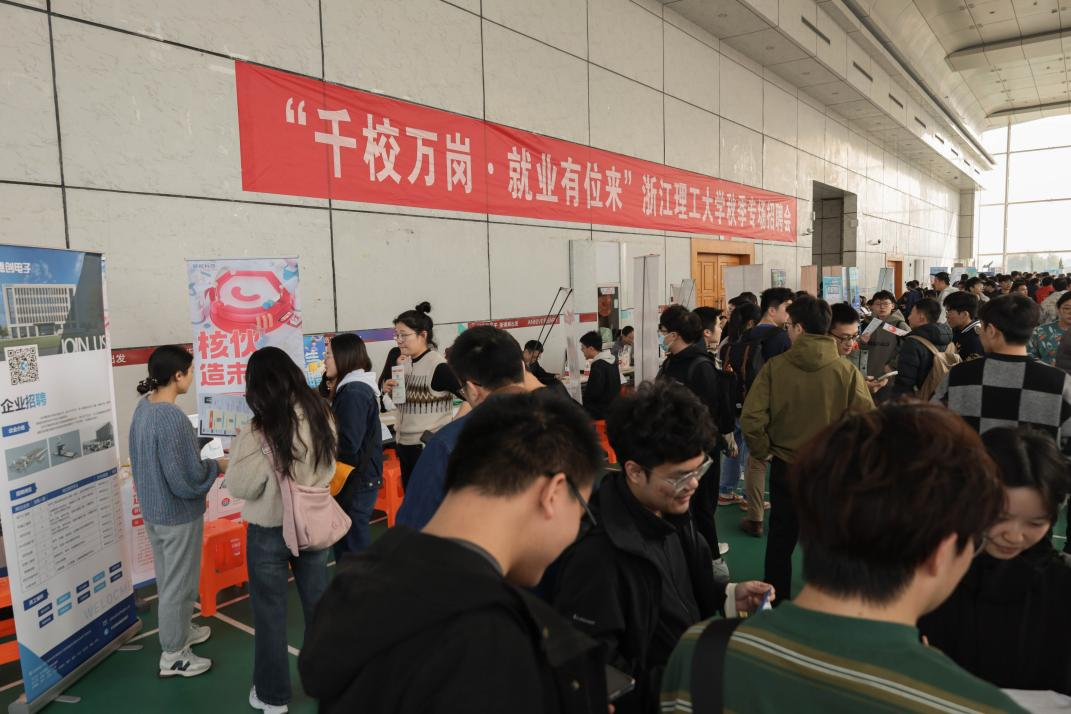 招聘会邀请了浙江华为通信技术有限公司、浙江零跑科技股份有限公司、浙江吉利控股集团有限公司等近七十家用人单位,为学生提供千余个就业岗位,现场人头攒动,参与学生300余人,同学们积极投递简历。