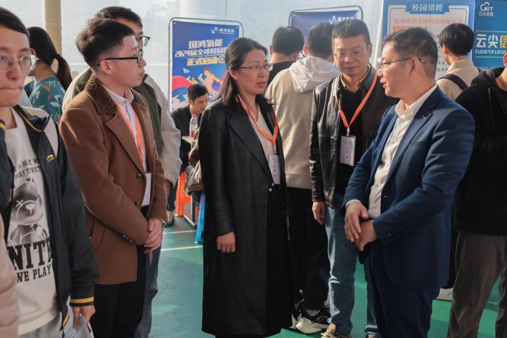 本次招聘会现场同步设置“求职加油站”,邀请浙江零跑科技股份有限公司人力资源部总部校园招聘经理韩鹏、杭州安恒信息技术股份有限公司人力资源部校园招聘经理丁迪、吉利控股集团校园华东大区经理甘晓霞、海兴电力集团人力资源管理部招聘专家刘雪晴,提供简历优化、职业规划等辅导,服务前来咨询学生110余人,帮助同学们更好的准备和应对面试和招聘,提升学生对行业发展趋势和就业市场的深度认知,助力同学早日斩获心仪的offer。