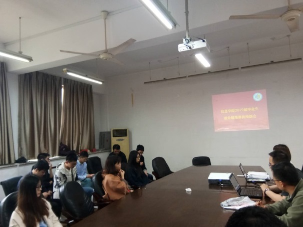 信息学院于4月26日在10号楼420举行了2019届毕业生就业精准帮扶座谈。信息学院15级辅导员黄诗莹、普开哈督普数据中心相关工作人员及部分就业困难学生出席了本次座谈会。座谈会围绕就业困难毕业生求职过程所面临的问题展开讨论。