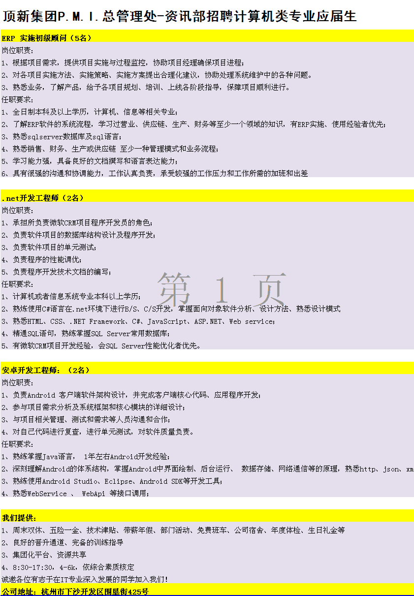 顶新集团P.M.I.总管理处-资讯部招聘计算机类专业应届生