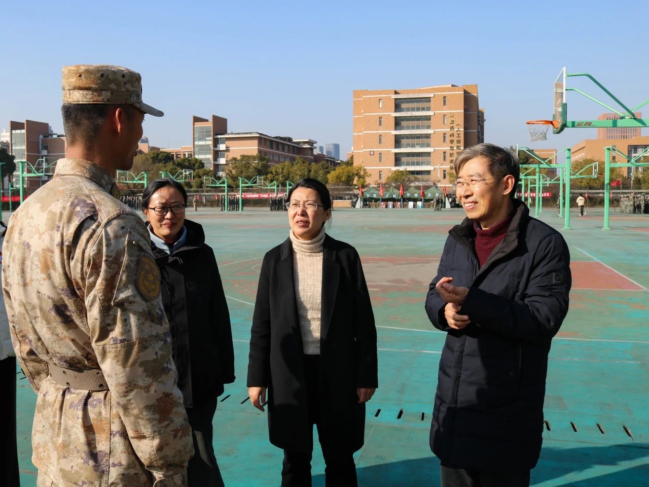 1月17日上午,为充分了解23级本科生军训情况,进一步关注学生思想动态,保证军训工作有序进行,球王会党委副书记、军训师政委缪鲁加,军训师副师长张毅,体育教研部(军训工作部)书记惠悲荷、副主任邹学芝来我院军训营地进行视察指导。