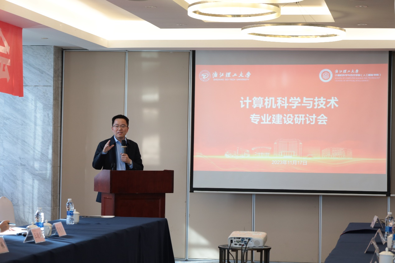 院长丁佐华从师资力量、科研团队、项目平台、专业课程、学科竞赛等方面对学院的发展现状和规划进行了全面的阐述,并总结了学院在计算机科学与技术专业建设中的优势所在与不足之处。
