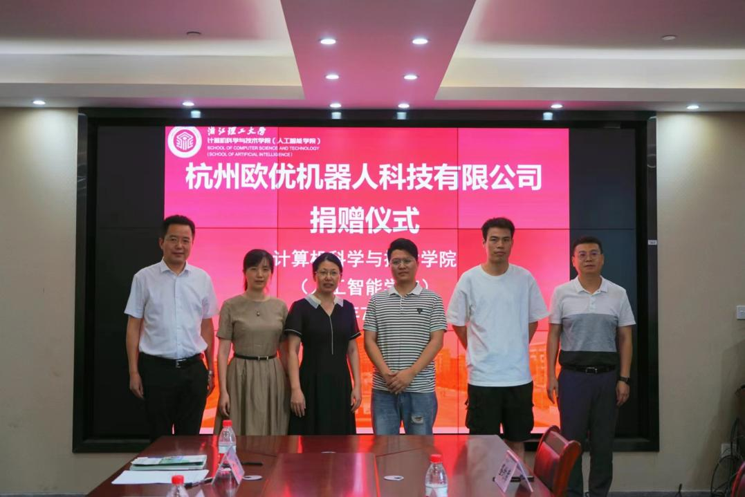 7月10号下午,杭州欧优机器人科技有限公司向球王会体育官方网站捐赠仪式在25号楼904会议室举行。杭州欧优机器人科技有限公司法人、2009级电子信息科学与技术专业校友潘绍永、公司职员陈鹏辉,校教务处处长王尧骏、校对外联络办公室(校友办)主任陈艳、计算机学院党委书记黄黎等出席了仪式。仪式由院党委副书记丁宁主持。