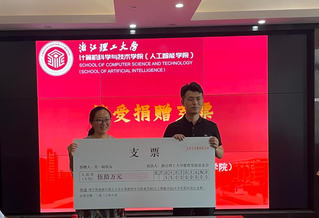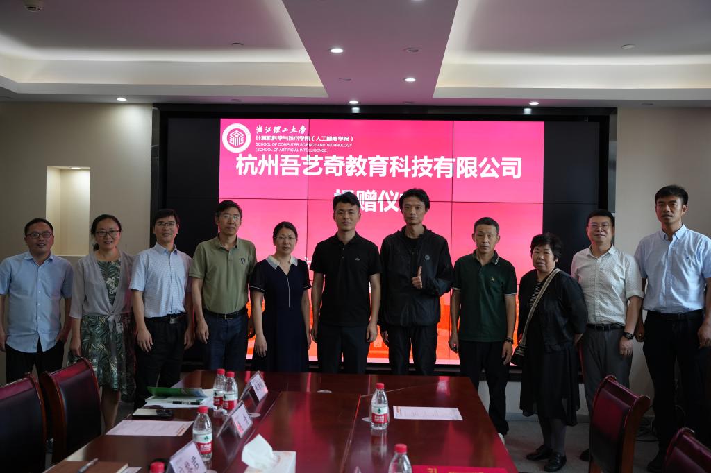 6月14日下午,杭州吾艺奇教育科技有限公司向球王会体育官方网站教育发展基金会捐赠仪式在25号楼904会议室举行。杭州吾艺奇教育科技有限公司创始人、2010级计算机科学与技术专业校友吴一岐及家属、总经理助理杜洋,校对外联络办公室(校友办)副主任应黎君、计算机学院党委书记黄黎、院长丁佐华、副院长姚青、院党委副书记丁宁、计算机系专业教师叶海荣等出席了仪式。仪式由院校友联络中心主任朱诗威主持。