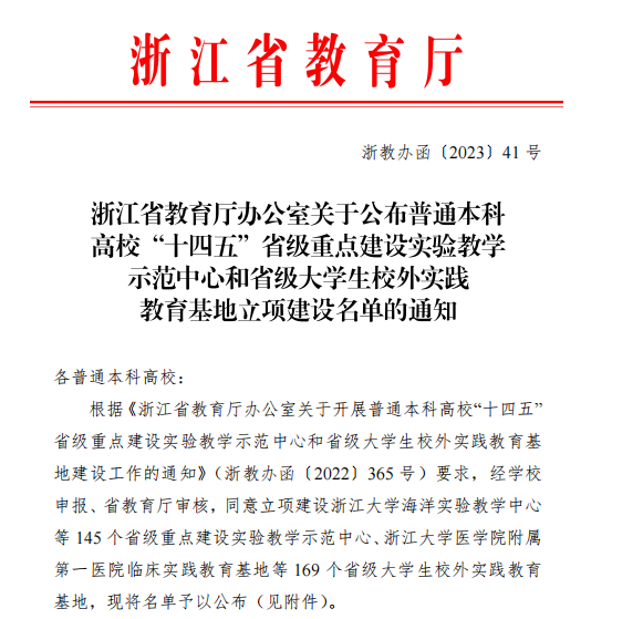 近日,浙江省教育厅办公室公布了普通本科高校“十四五”省级重点建设实验教学示范中心立项建设名单(浙教办函〔2023〕41号)。其中,由我院蒋明峰副院长负责的智能软件与计算实验教学中心成功入选。