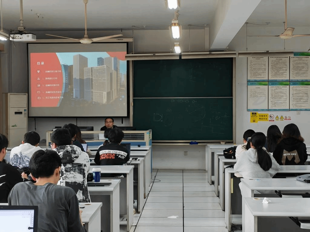 课堂上傅总首先进行了金融科技行业介绍并讲解了金融科技圈的职业岗位分类和职业发展路径,并结合浙商银行科技部的工作展开详细介绍,包括浙商银行科技部的发展史、数字化改革“185N”体系构架、五大板块的协同发展,充分发挥区块链、物联网、大数据等金融科技与业务融合创新的优势,形成一系列数字化改革成果。傅总重点介绍了金融科技技术的应用,通过讲解和展示银行系统中开发技术栈的应用,使同学们对专业技能和企业应用有了更直观的认识。最后傅总结合自身经历和企业需求对同学们提出了专业学习和自身发展的意见建议,要求同学们要牢固树立踏踏实实从小事做起的意识,牢固树立主动意识,牢固树立团队意识,牢固树立规范意识。努力学习专业技术知识,快速掌握工作技能和本领,勤奋务实,对自己负责,对社会负责。在交流互动环节,同学们积极参与,纷纷向企业导师提出自己的问题,导师都耐心给予解答。报告结束后,同学们意犹未尽,纷纷反映邀请企业导师进课堂,让大家近距离地了解了金融科技圈和银行系统的开发技术体系,拓展了视野,提高了兴趣,学到了与学校老师授课不一样的知识,大家收获满满、感悟颇深。