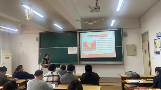 党委书记黄黎传达了学校对于学习党的二十大精神的要求,带领全体与会人员深入学习了党的二十大精神。她从党的二十大主题着手,深刻剖析了二十大报告中的主要内容及新观点、新论断和新思想。她指出,党的二十大是在全党全国各族人民迈上全面建设社会主义现代化国家新征程、向第二个百年奋斗目标进军的关键时刻召开的一次十分重要的大会。深入学习、准确领会、全面贯彻党的二十大精神,是当前和今后一个时期的重大政治任务,各系、中心、办公室及党支部要积极行动起来,通过各种形式开展学习宣传贯彻党的二十大精神活动,切实把全院教职工的思想和行动统一到报告精神上来。