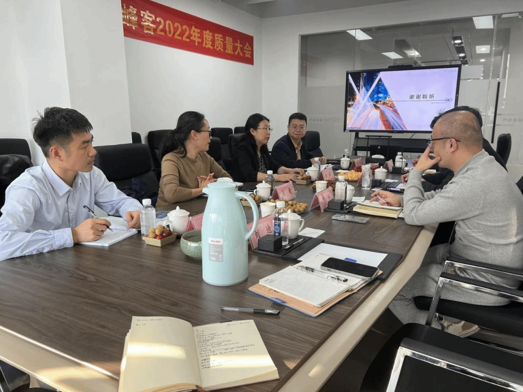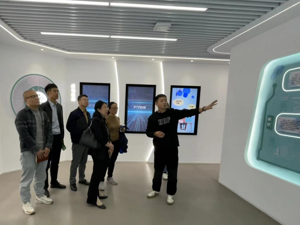 会前,许玉军等陪同黄黎一行参观了浙江峰客电气有限公司展厅,详细了解公司的发展历程、合作伙伴、荣誉资质和核心业务等各项内容。