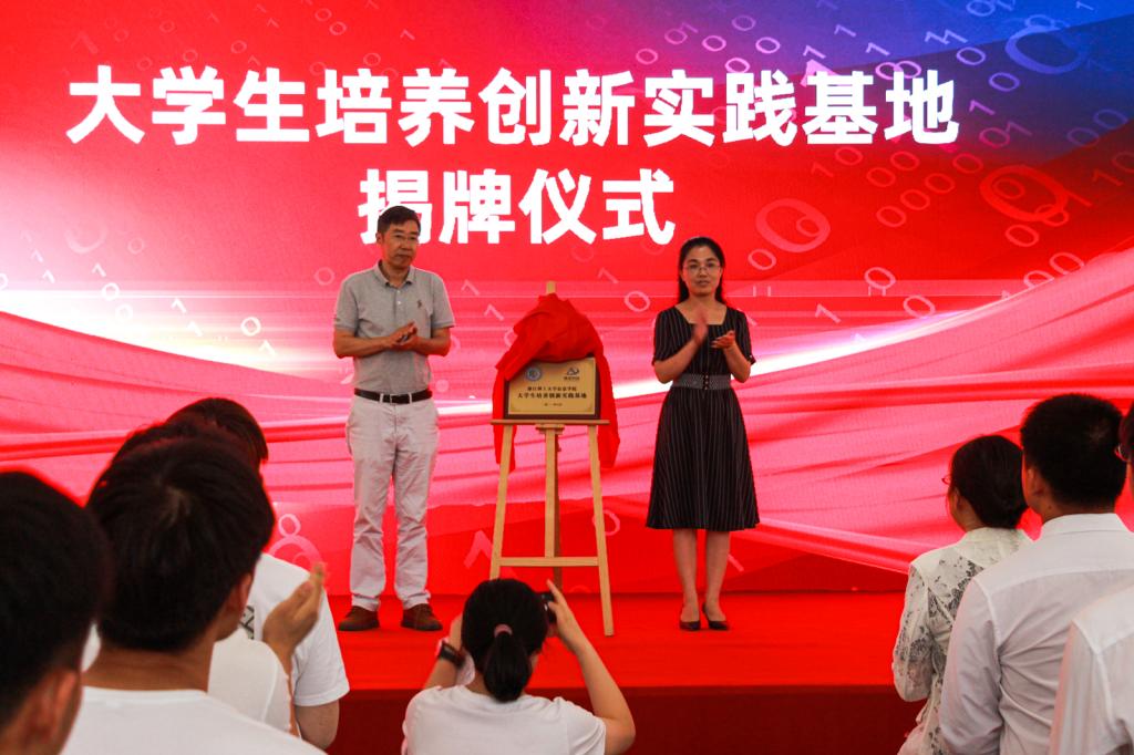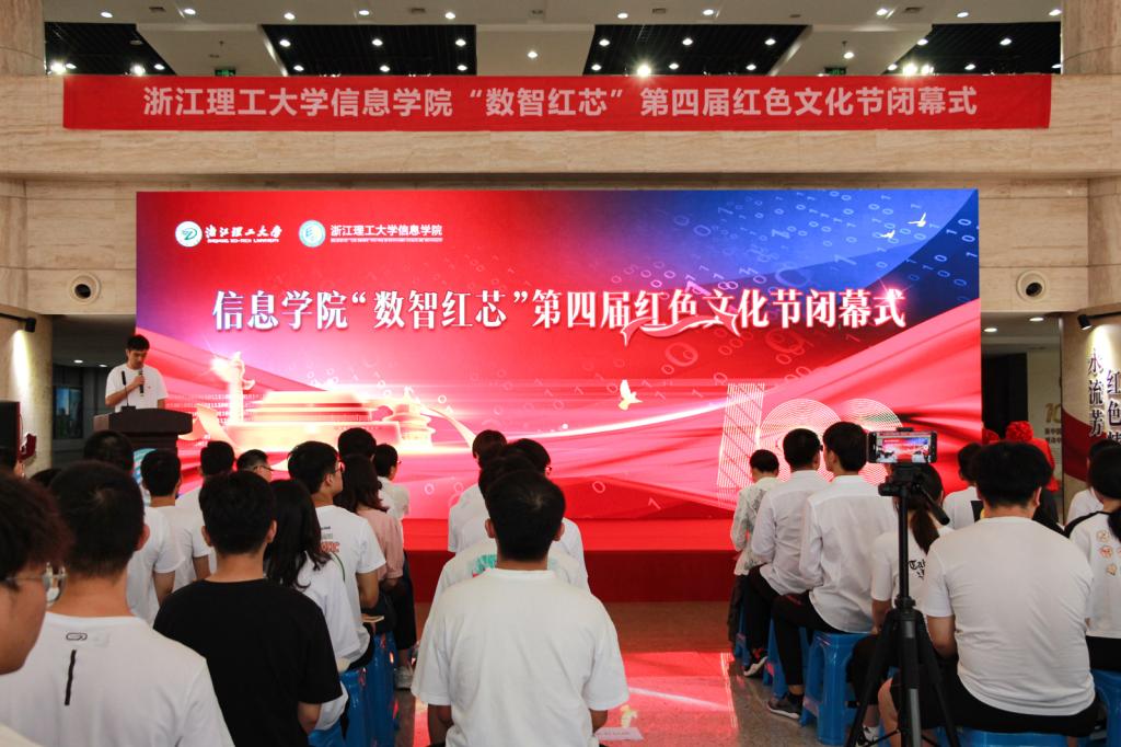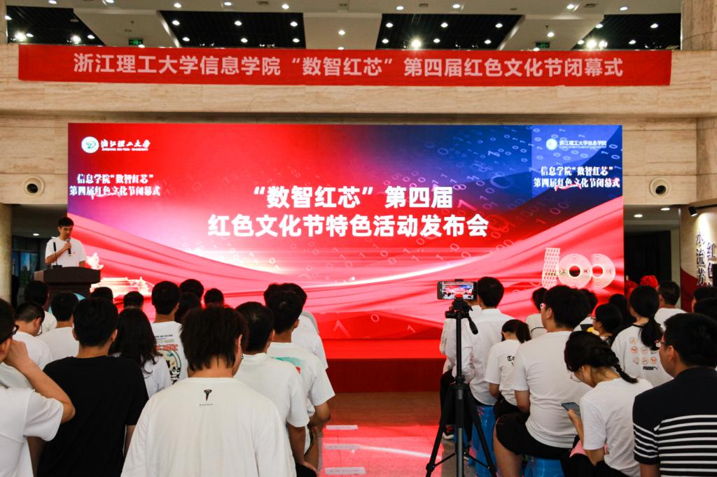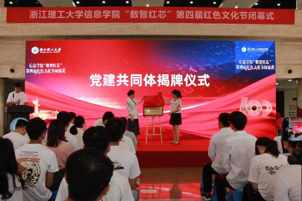 闭幕式在庄严的入党誓词中拉开帷幕。黄黎领誓。接着,举行了“数智红芯”第四届红色文化节特色活动发布会,红色诗歌朗诵比赛短视频、“用代码向党表白”优秀作品、“重走长征路”小游戏、“浙理智廉”学习平台等四项特色活动相继发布,并请现场师生体验试玩,受到大家的一致好评。随后,黄黎和胡可为信息学院党委与甲骨文园区创新中心党支部党建共同体揭牌,丁佐华和余艳为信息学院与杭州峰景科技有限公司共建的大学生培养创新实践基地揭牌。