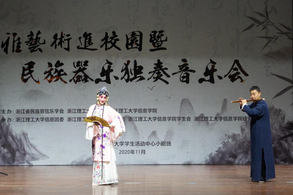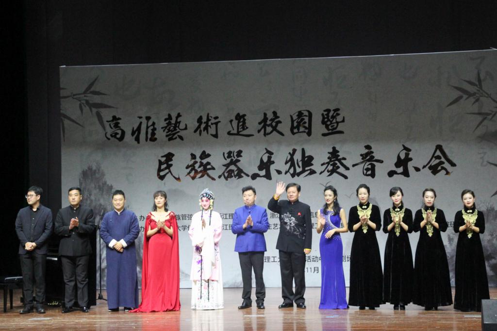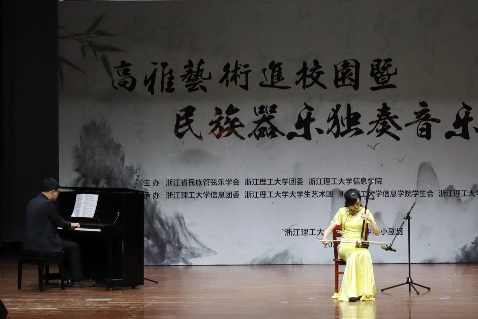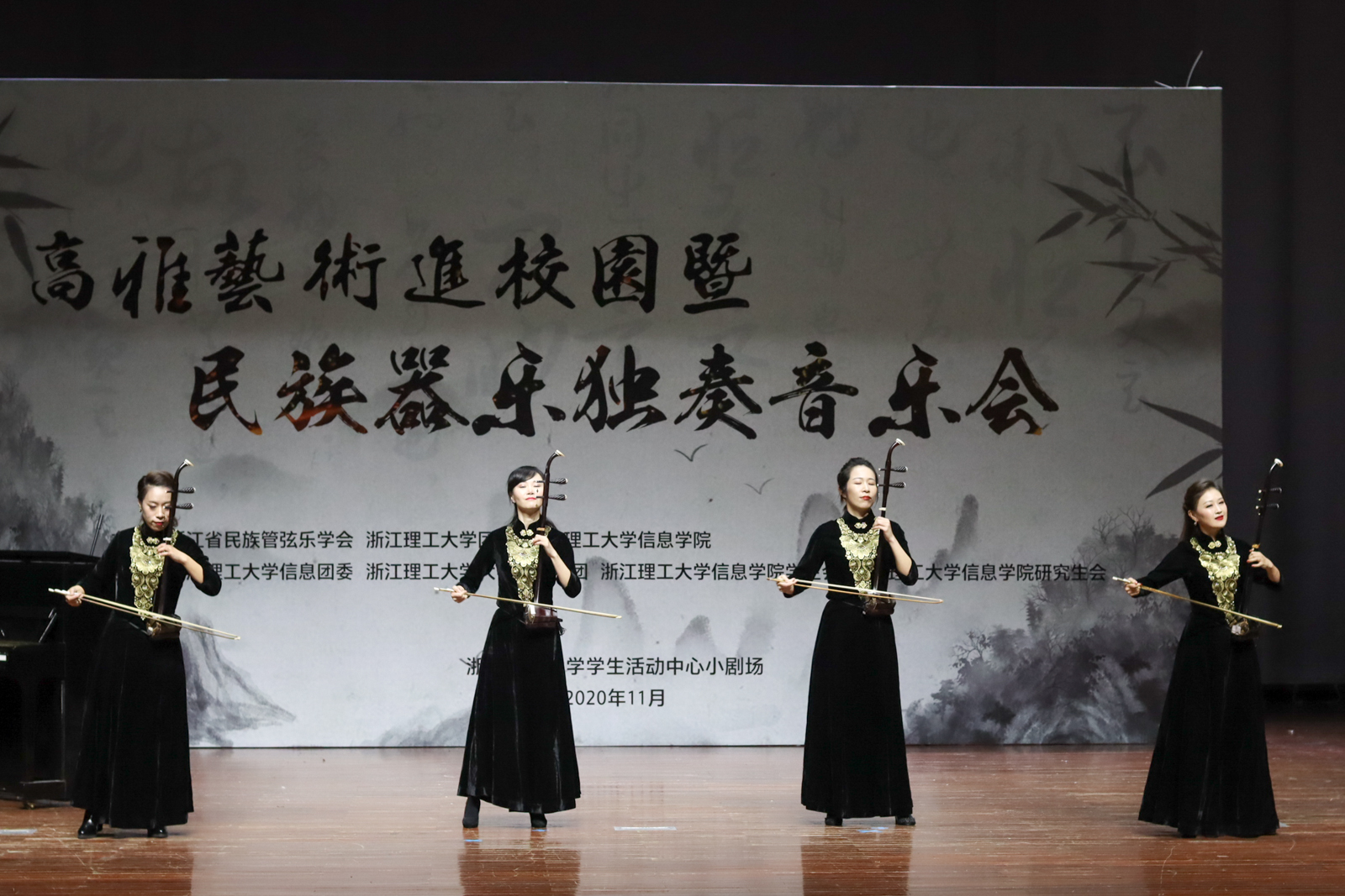 11月27日下午,高雅艺术进校园暨民族器乐独奏音乐会于学生活动中心小剧院举办。本次活动由浙江省民族管弦乐学会、学校团委、信息学院主办,由信息学院团委、学校大学生艺术团、信息学院学生会、信息学院研究生会联合承办,旨在让青年学子们感受民族器乐的魅力、陶冶艺术情操。我院79级校友、创智科技董事长刘健先生,83级校友、达峰科技董事长徐昌国先生,05级研究生校友、涂鸦智能董事长陈燎罕先生,理学院01级校友、涂鸦智能首席技术官周瑞鑫先生,恒生电子首席架构师章乐焱先生莅临音乐会,我院党委书记苏志俭、院长丁佐华等领导班子出席本次活动,此外,还有来自全校的五百余名教职工和同学们来到活动现场。