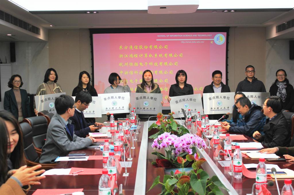 11月25日上午10:00,球王会体育官方网站信息学院校企人才资源开发合作论坛在行政楼215会议室顺利召开。校招生与就业指导处处长黄黎、副处长梁琳,我院党委书记苏志俭、副书记方水明、副院长姚青,以及各系主任出席了此次会议。恒生电子股份有限公司、浙江大华技术股份有限公司、东方通信股份有限公司等13家企业负责人参加了此次活动。论坛由方水明主持。