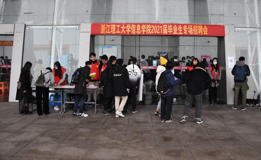 当天下午13:00,球王会体育官方网站信息学院2021届毕业生专场招聘会在球王会体育馆二楼举办。本次招聘会吸引了包括浙江核新同花顺网络信息股份有限公司、利尔达科技集团股份有限公司、蓝鸽集团有限公司、中浙信科技咨询有限公司、三维通信股份有限公司等企业在内的80余家单位报名参加,提供工作岗位数3500余个。到场的学生积极地与招聘人员进行交流,主动了解用人单位的基本情况并表达自己的求职意向。各参会企业人力资源部负责人详细地向应届毕业生介绍了企业的人才发展方向、工作要求、福利待遇等大家关心的问题。大部分同学在现场均投递了简历,有部分同学已经与企业达成初步就业意向。