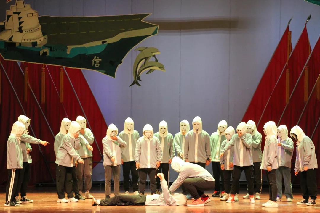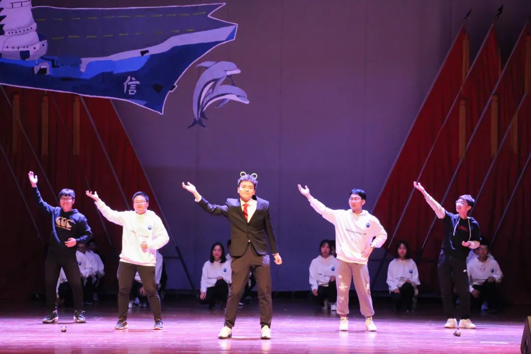 随着夜幕的降临,晚会逐渐拉开帷幕,舞台上,灯光骤然亮起;舞台下,一支支荧光棒闪烁着、跳跃着。晚会伊始,一场街舞串烧仿佛彩色的光束划过沸腾的空气,表演者用华丽的舞姿将场上的气氛推向高潮。晚会绚丽缤纷、节目丰富多彩,《1919已末事件》、《金色的鱼钩》等从红色主题出发,用感人肺腑的故事生动展现了青年志士们敢于担当、勇于奉献的大爱情怀,宣扬了爱国主义精神;而《我的梦》、《追梦》等则描绘了青年学生在追求梦想的道路上不懈奋斗拼搏的身影,从现实与梦想的思考中展现了“有梦就去追”的澎湃激情与潇洒;《boom》、《霍元甲》等用富有活力的悦动舞姿展示了学生的青春活力绽放与年轻风华正茂;《计你太美》、《彩排那些事》则融合了流行的梗元素让观众会心一笑,描绘了团展排练以来同学们之间的点点滴滴,也表现出了本次团展排练对同学们互相理解包容、团结一心的积极作用,向我们展示了“有你便是有爱”的青春热情。