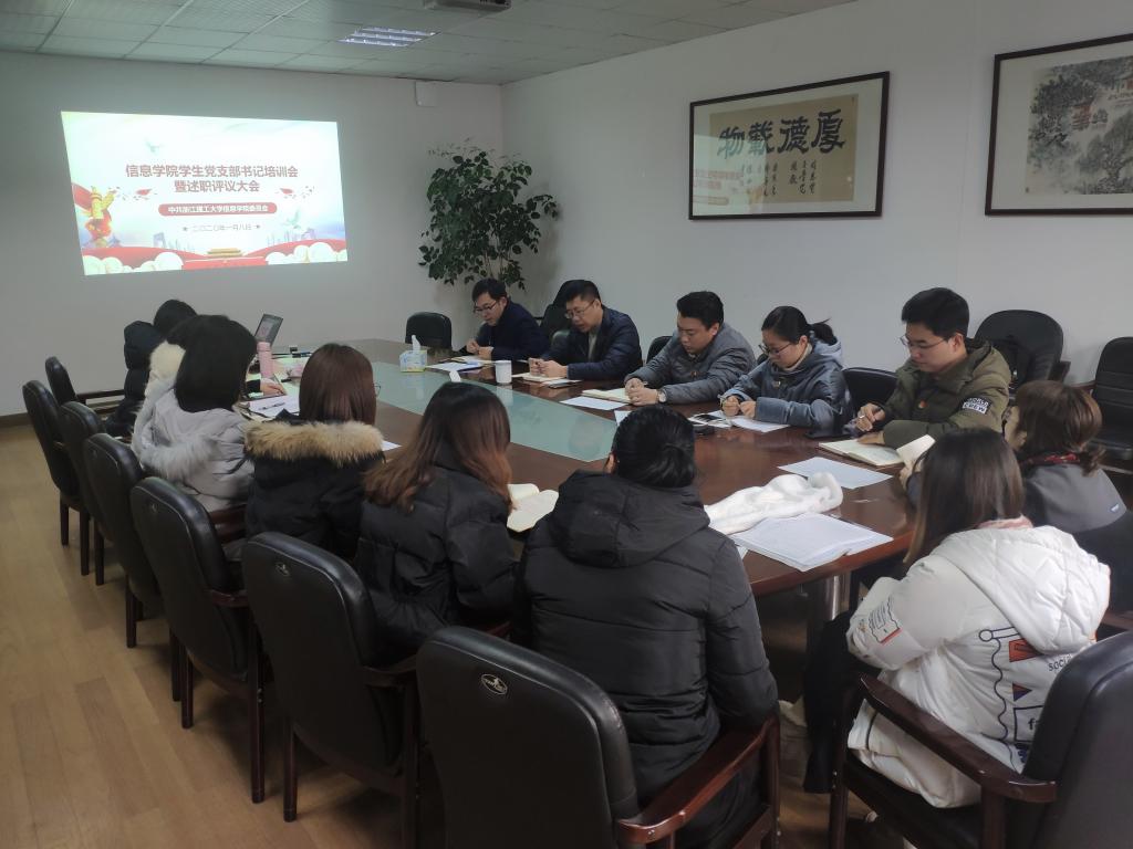 1月8日下午,我院在10-315召开了学生党支部书记培训会暨述职评议大会。学院党委书记苏志俭,党委副书记方水明,以及各学生党支部书记参加会议。会议由方水明主持。