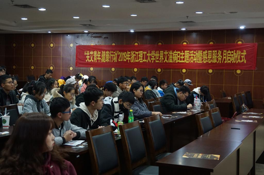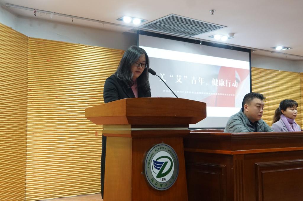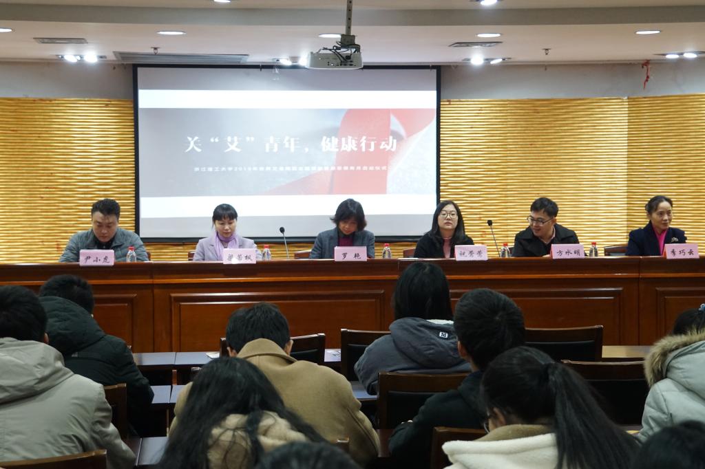 为响应党中央号召进一步宣传普及防艾知识、提高广大青年的防艾意识、营造良好的防艾控艾氛围,11月30日下午,“关‘艾’青年,健康行动”球王会体育官方网站2019年世界艾滋病日主题活动暨感恩服务月启动仪式在行政楼一楼报告厅顺利举行,本次活动由球王会体育官方网站信息学院团委、球王会体育官方网站红十字会学生分会主办。杭州市疾病预防控制中心艾滋病防治所所长罗艳、校团委副书记祝莺莺、校医院院长梁若枫、信息学院党委副书记方水明、校医院办公室主任季巧云、信息学院党委书记尹小虎出席了本次活动。