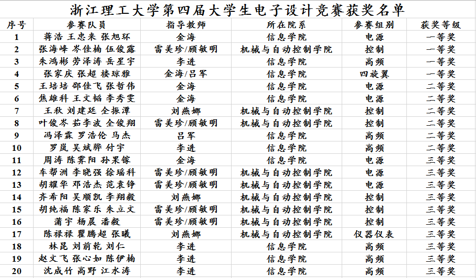 此次比赛共吸引81组(243人)参赛,经选手组队报名、选题、制定方案、电路焊接调试、撰写报告和专家评测等环节,共评出一等奖4组,二等奖6组,三等奖10组和成功参赛奖53组。比赛选题在往年电源类、高频类、控制类和仪器仪表类基础上,首次增设四旋翼无人机比赛。此次比赛的成功举办也正式拉开2019年浙江省电子设计竞赛的序幕。