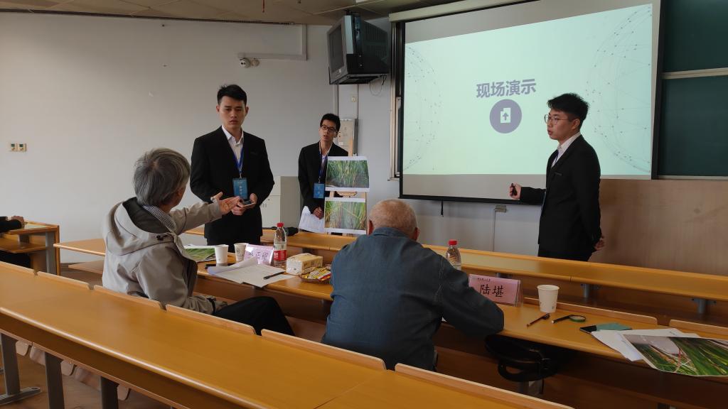 毛毛虫派团队由郭龙军、谷嘉乐、韩爽、冯晋、邵泽中、俞佩仕、吴叔珍、李越、杜鹏、张哲宇等几位同学组成,团队将Android手机、WiFi相机、可伸缩杆、云服务器等常见设备通过软件相连接,创设准确的稻飞虱自动计数算法,运用无线传输、视频解码、HTTP通信和图像识别等信息技术手段,研制了“基于移动终端的便携式稻田飞虱自动计数仪”。植保员单人操作手机、相机,无需弯腰即可在5-10秒内完成水稻基部图像的拍摄上传、自动计数、自动反馈、数据统计等工作,大幅度减轻工作强度,提升计数效率,实现数据可追溯。