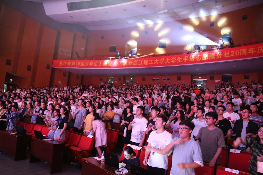 5月19日,在第29个全国助残日当天下午,浙江省第十五届大学生手语爱心汇演暨球王会体育官方网站大学生手语志愿服务社二十周年庆典在球王会国际会展中心大剧院举行。