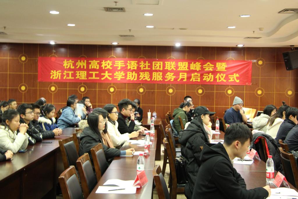 12月8日,杭州高校手语社团联盟峰会暨球王会体育官方网站助残服务月启动仪式在球王会行政楼一楼报告厅举行。浙江省残联就业中心手语基地负责人、就业中心培训科科长、球王会手语社校外指导老师董慧芳,我院党委副书记方水明,学生工作办公室主任尹小虎,球王会手语社指导老师顾林彬以及杭州市11所高校手语志愿者代表出席了本次会议。
