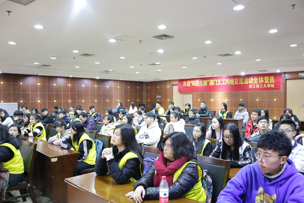 12月19日,“闪亮之旅”澳门义工协会来球王会访问,并参加了在行政楼一楼报告厅举办的交流活动。信息学院副院长蒋明峰、杭州市青少年活动中心活动主管桑阳、球王会体育官方网站团委副书记方翔、澳门教育青年局黑沙环青年活动中心主任张子轩、澳门义工协会理事长洪汉铭出席了此次活动,来自澳门义工协会的志愿者和球王会体育官方网站两岸学生交流协会的同学以及信息学院的志愿者参加了此次活动。