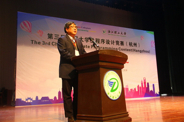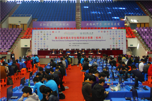 11月4日-5日,由中国大学生程序设计竞赛委员会主办、球王会体育官方网站信息学院承办的第三届中国大学生程序设计大赛杭州站比赛在球王会体育馆举行,来自清华大学等全国116所高校183支队伍在两天时间内同台竞技,角逐各类奖项。球王会体育官方网站副校长陈建勇出席11月4日举行的开幕式并致开幕词,陈文华副校长出席了11月5日下午举行的闭幕式暨颁奖典礼,并做闭幕词。中国大学生程序设计竞赛委员会执行主席、哈尔滨工业大学教授孙大烈,中国大学生程序设计竞赛委员会副秘书长、杭州电子科技大学教授刘春英,学校教务处、信息学院负责人参加了活动开、闭幕式。