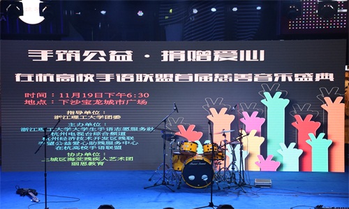 11月19日,在第25个国际残疾人日来临之际,校大学生手语志愿服务社在宝龙广场牵头举办“手筑公益,捐赠爱心”在杭高校首届慈善音乐盛典,为助残服务月拉开序幕,获得杭州电视台综合频道新闻60分的播报和全程网络直播支持。