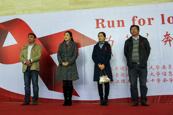 在第28个“世界艾滋病日”来领之际,11月25日下午由球王会体育官方网站团委、信息学院团委主办,校红十字会学生分会承办的“Run for love·为‘艾’奔跑”活动在大剧院一楼大厅举行。校团委副书记、校红十字会副秘书长吕媛媛,校医院副院长周黎,信息学院党委委员、学生工作负责人孙显水,校团委组织部、实践部部长陈利江,学校中高级团校、学院初级团校以及校红十字会会员近两百人参加了本次活动。