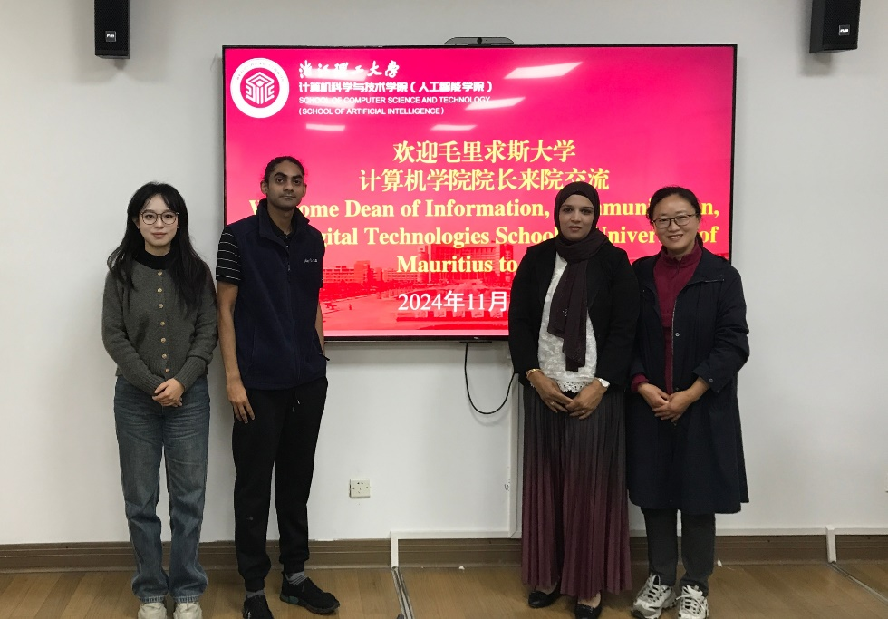 黄黎首先对Maleika Mehr Nigar Mohamed HeenayeMamodeKhan的来访表示热烈欢迎,随后,双方就各自学院发展历史、科学研究领域、学科专业特色、人才培养等进行了介绍,并进一步探讨了未来可能的合作方向。