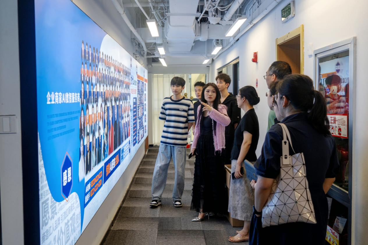 女王城堡创始人、杭州丸普生物科技有限公司董事长、走心传媒 CEO、计算机学院校友理事会成员、05级计算机科学与技术专业优秀校友陈彬彬热情接待了母校到访人员,带领参观企业并进行了座谈会。会上,陈彬彬对母校老师的到来表示热烈欢迎,回忆了自己在校的学生工作经历并讲述了创业的历程,感谢母校老师一直以来对自己的关心和支持,随后她着重介绍了公司目前以AI智能体为核心开展的业务模式、系统功能以及AI数字人业务的发展。
