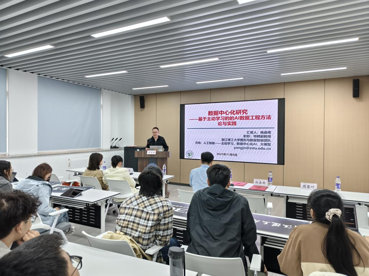 学院青年教师杨嘉南带来《数据中心化研究》分享。聚焦计算机视觉领域,详解“数据筛选、数据工程、主动学习”等核心内容,剖析数据在大模型训练中的关键作用,为有志于科研的学子提供了从“理论到实践”的清晰路径。